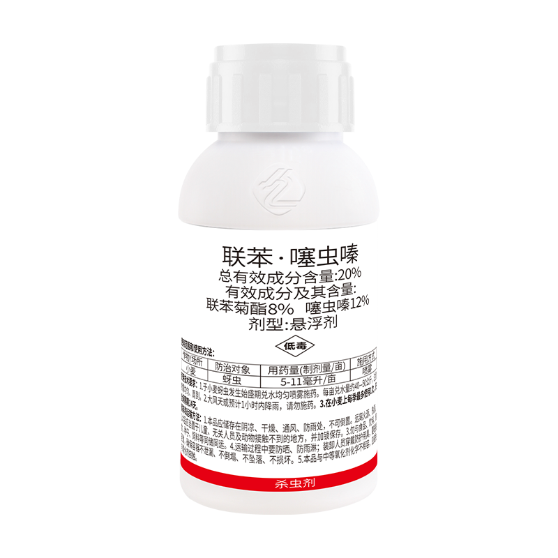 产品特点: 本产品为新型类杀虫剂与拟除虫菊酯类杀虫剂混合而成,活性成分为8%联苯菊酯和12%噻虫嗪。
